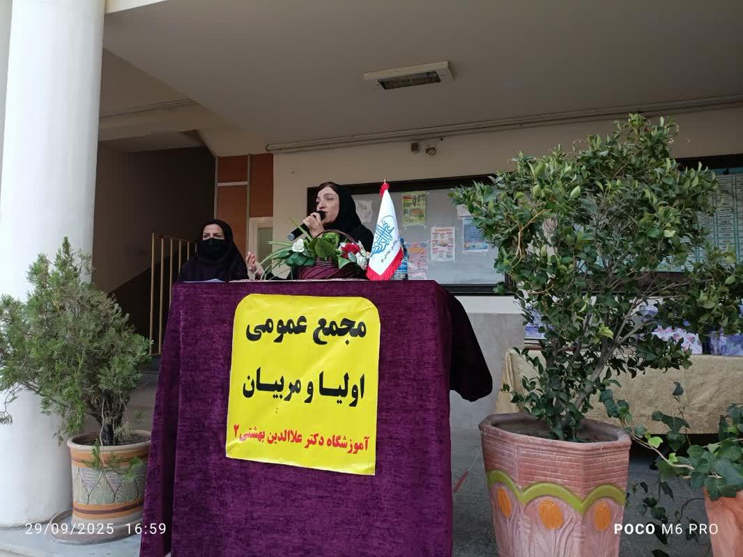 اولین مجمع عمومی اولیا و مربیان دبیرستان در هفتم مهر ماه با حضور حد اکثری اولیا ,اعضای هیات امنای مدرسه ,مدیریت و کادر اجرایی برگزار گردید .در این جلسه مدیر مدرسه سرکار خانم کاظمی از فعالیت عای انجام شده و گزارش بیلان مالی مدرسه را ارائه دادند.سپس جناب دکتر طاهری رییس هیات امنای مدرسه در خصوص برنامه و فعالیت صحبت کردند.