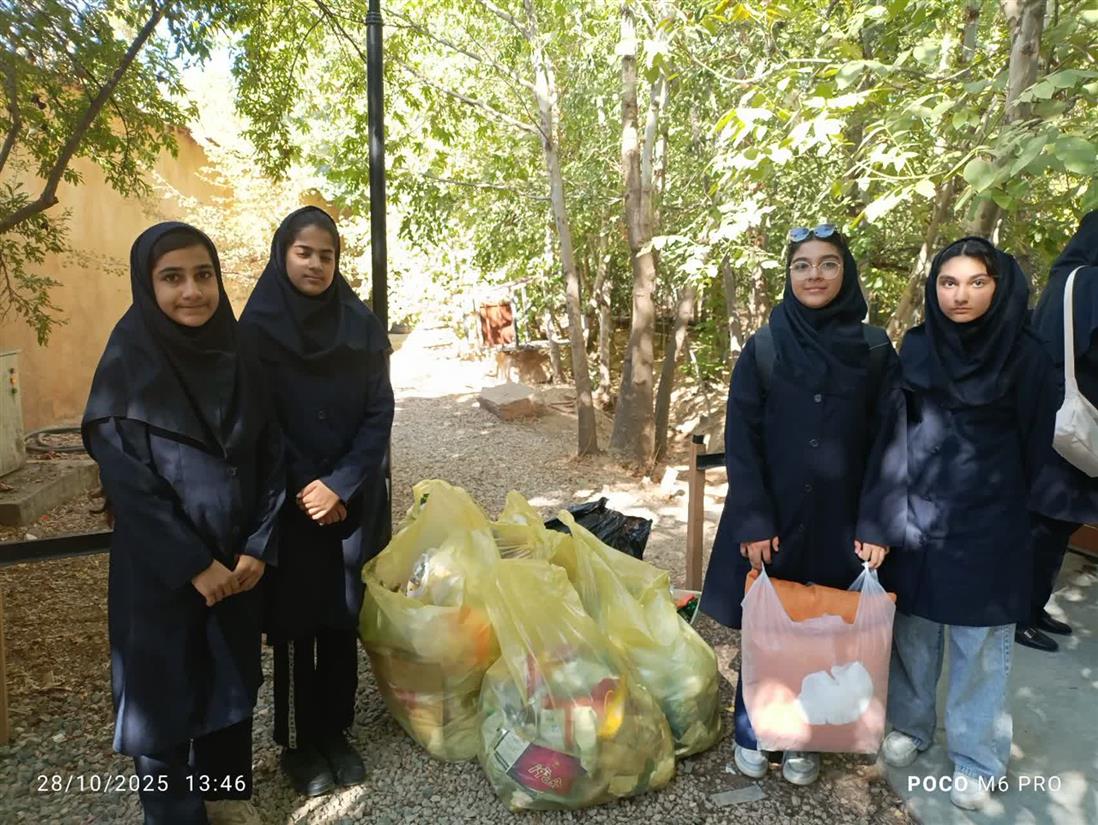 جمع آوری زباله توسط دانش آموزان در محل برگزاری اردو